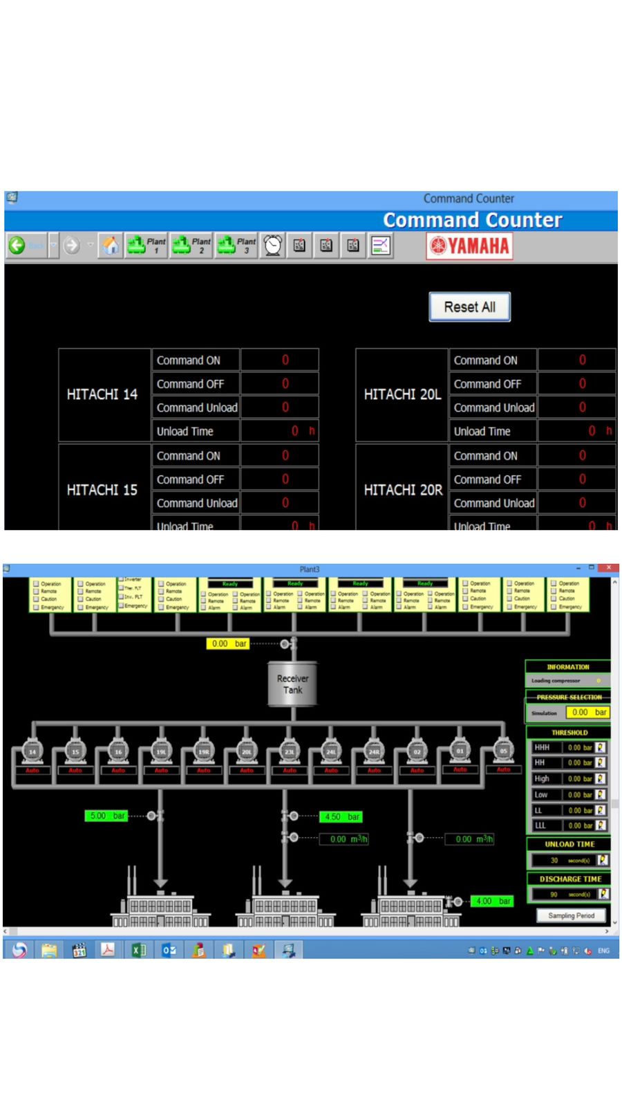 System handle optimization the operation of more than 20 Compressors. User only require to set target value for the system. System will calculate automatically and activate or deactivate the compressor as required.